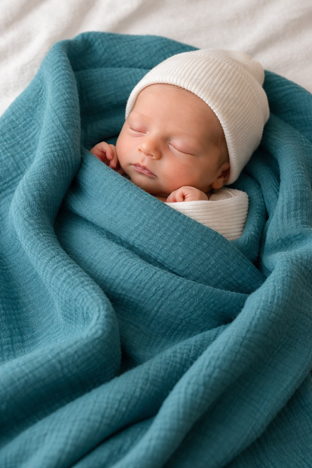 Musliinist beebitekk „meresinine“ – kahekordne pehmus ja turvatunne sinu beebile